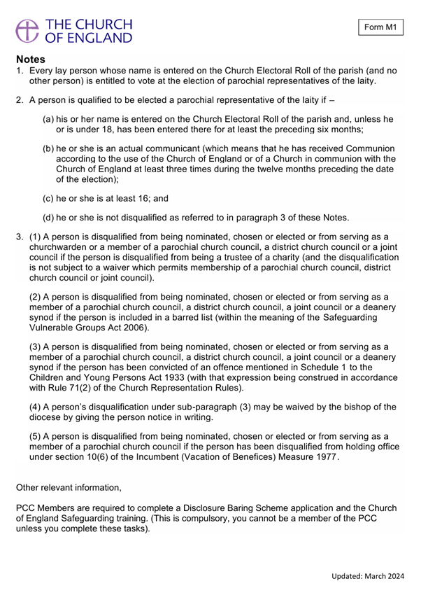 Information from the Revd. Canon Laurie Bond (Area Dean):